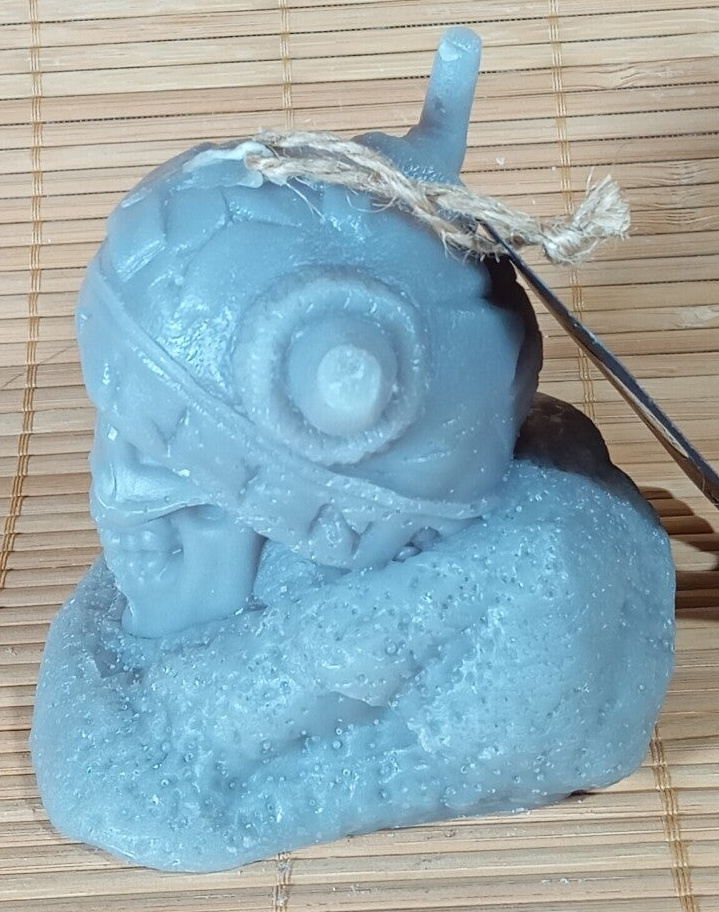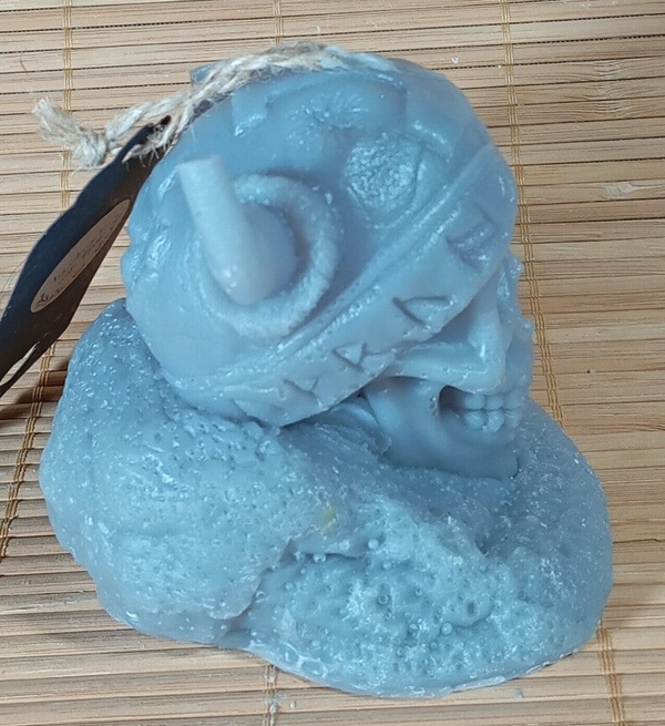 Entdecken Sie diese stilvolle, schlichte graue Kerze, die nicht nur durch ihre Farbwahl beeindruckt, sondern auch durch ihr einzigartiges Design. Diese Kerze ziert ein kunstvoll gestalteter Totenkopf, der einen traditionellen Wickingerhelm trägt. Der Kontrast zwischen dem minimalistischen Grau und den detaillierten Elementen des Totenkopfes verleiht jedem Raum eine besondere Atmosphäre. Ideal für Liebhaber von nordischer Mythologie oder als rundum edles Dekorationsobjekt, überzeugt diese Kerze durch ihre vielseitige Einsetzbarkeit. Ob für besondere Anlässe oder als Blickfang in Ihrem Wohnraum, diese Kerze setzt stilvolle Akzente und sorgt für eine geheimnisvolle Stimmung. Der hohe Brennwert sorgt zudem dafür, dass Sie lange Freude an dieser außergewöhnlichen Kerze haben. Verleihen Sie Ihrem Zuhause einen Hauch von Abenteuer und Mystik mit unserer grauen Totenkopfkerze!